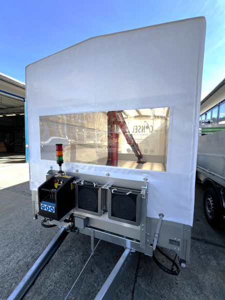 Das Durchladesystem eignet sich unter anderen bestens für Speditionsunternehmen. Der Anhänger mit Öffnungsmöglichkeiten hinten und vorne ermöglicht es Ihnen, einen Anhängerzug ohne Abkuppeln zu be- und entladen. Ein Anhänger mit Durchladesystem lässt sich an der Stirnwand mit dem für Sie besten System schnell und sicher öffnen. Mittels Rampen lassen sich Zugfahrzeug und Anhänger verbinden und sich Ihre Transportgüter einfach be- und entladen.