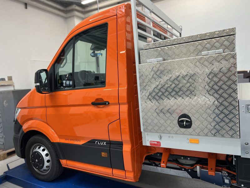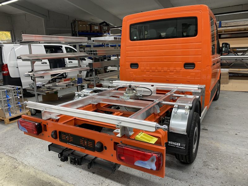 Nutzfahrzeug   hergestellt von Wenger AG Basel Abteilung Individueller Ausbau/Ausbauten/Ladungssicherung Ausbauten realisiert