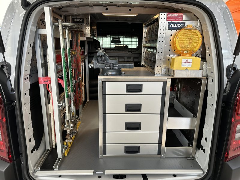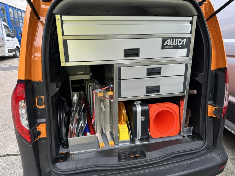 - Manövrierfähigkeit und Ergonomie: Lieferwagen und Transporter sind oft wendiger als grössere LKWs, was besonders auf Strassenbaustellen, wo der Platz begrenzter ist, von Vorteil sein kann. Die durchdachte, organisierte und ergonomische Gestaltung des Auf- oder Ausbaus, wie wir dies mit unseren Kunden zusammen gemeinsam planen, führt hierbei zu einer höheren Produktivität.